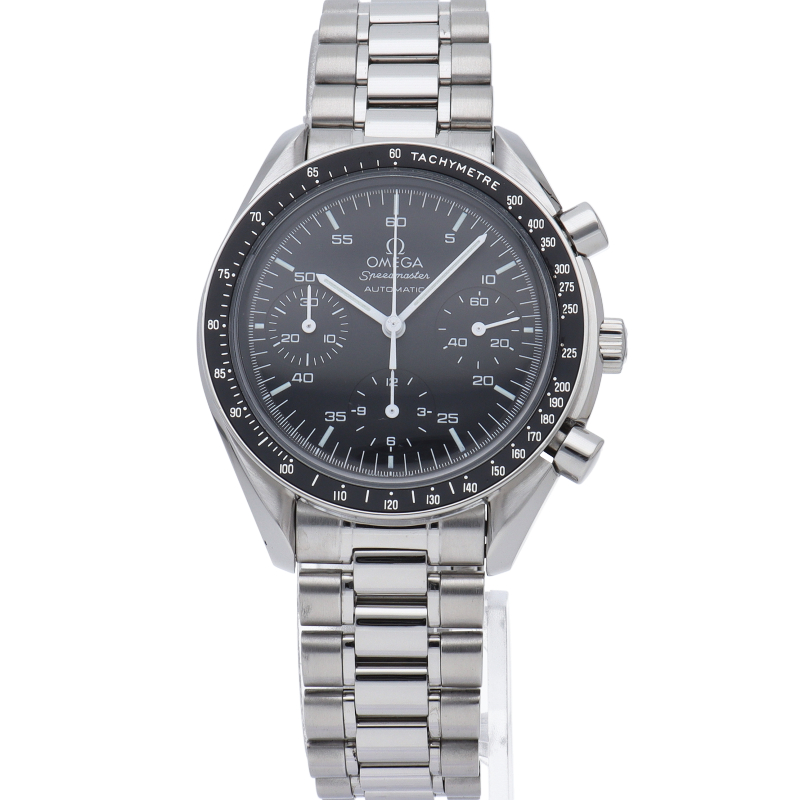 オメガを代表する人気シリーズ「スピードマスター」。プラ風防を使用したレトロな雰囲気かつシンプルにまとまったデザインがスタイルを選ばずにご使用いただけます。