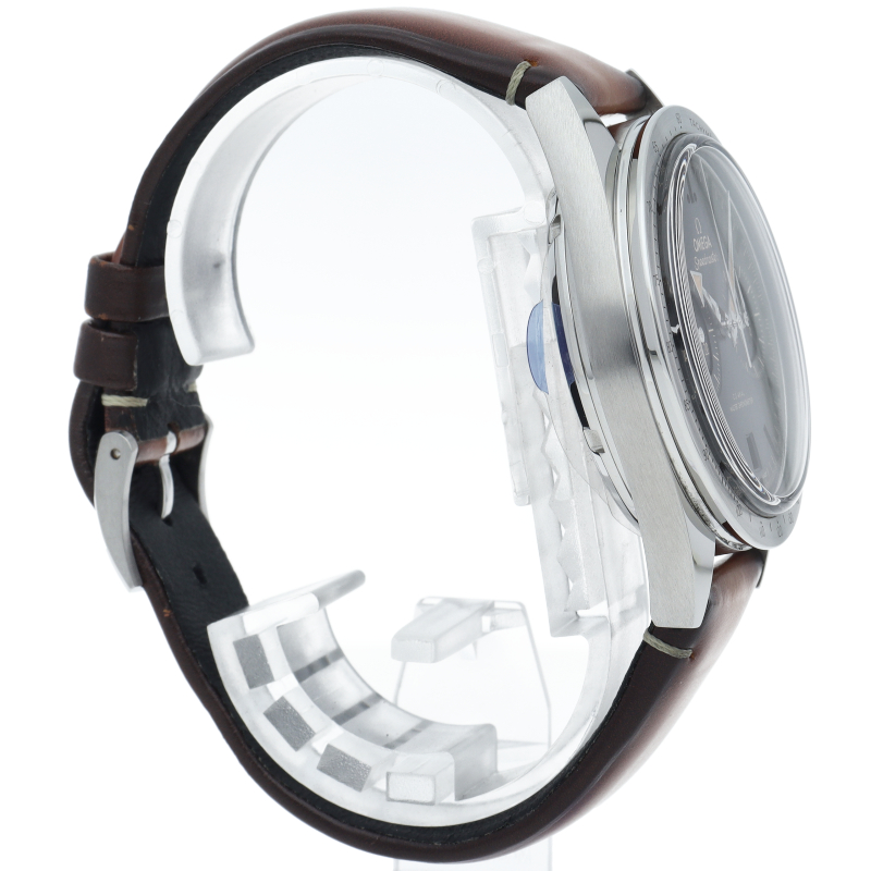 1957年に誕生したスピードマスター1stをモチーフとし、心臓部に最新鋭のキャリバー9300を搭載してデビューしたのがこちらのモデル。フェイスは2カウンター式のクロノグラフとなりますが3時位置のインダイヤルに12時間計と30分積算計を同軸で設置し9時位置にスモールセコンドを配置するユニークな仕様。手巻きムーブメントキャリバー9906を搭載しています。