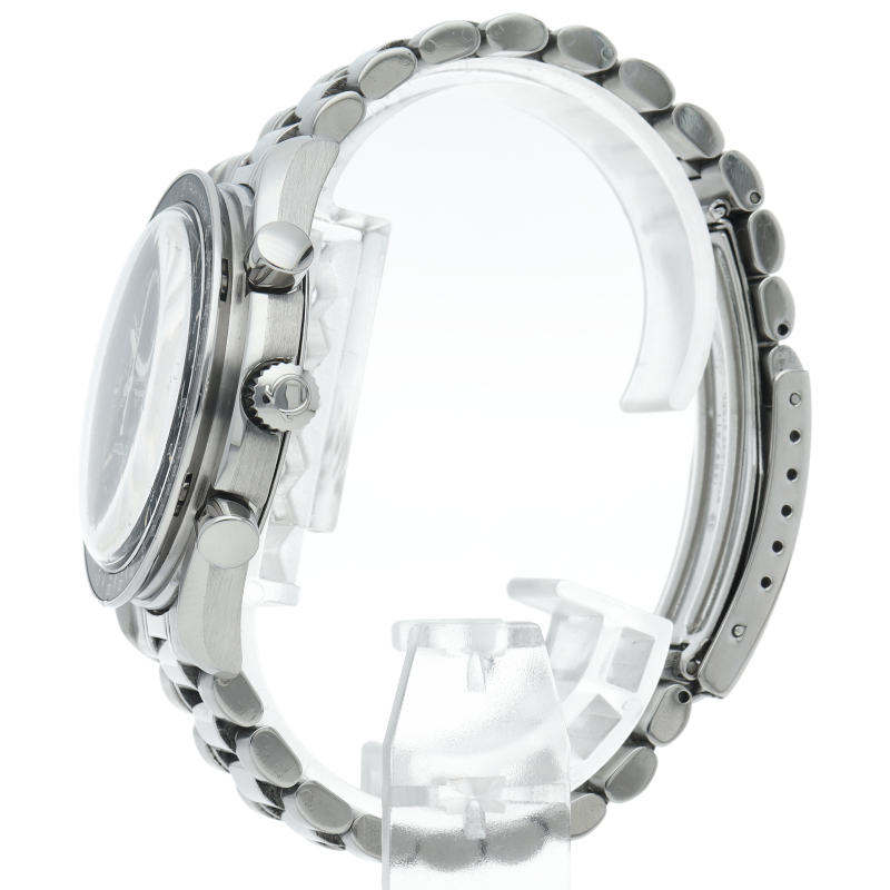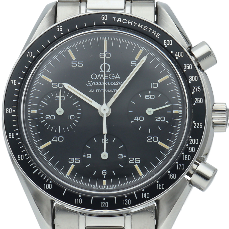 オメガを代表する人気シリーズ「スピードマスター」。プラ風防を使用したレトロな雰囲気かつシンプルにまとまったデザインがスタイルを選ばずにご使用いただけます。