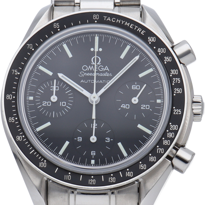 オメガを代表する人気シリーズ「スピードマスター」。プラ風防からサファイアクリスタル風防へ仕様変更された実用性の高いモデルです。すでに生産終了となり、これからの相場が楽しみな1本です。