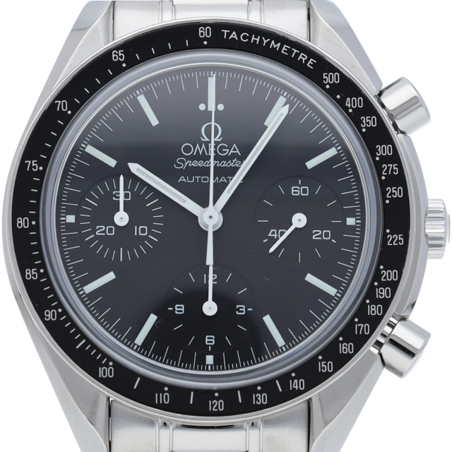 オメガを代表する人気シリーズ「スピードマスター」。プラ風防からサファイアクリスタル風防へ仕様変更された実用性の高いモデルです。すでに生産終了となり、これからの相場が楽しみな1本です。