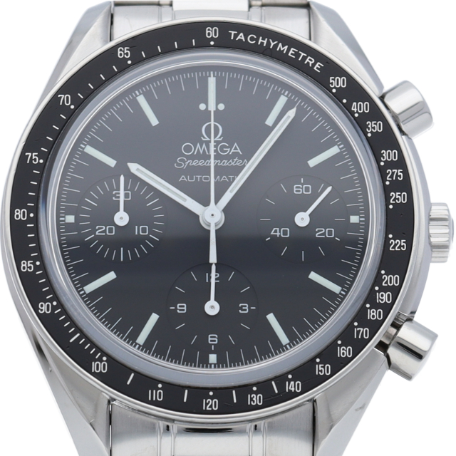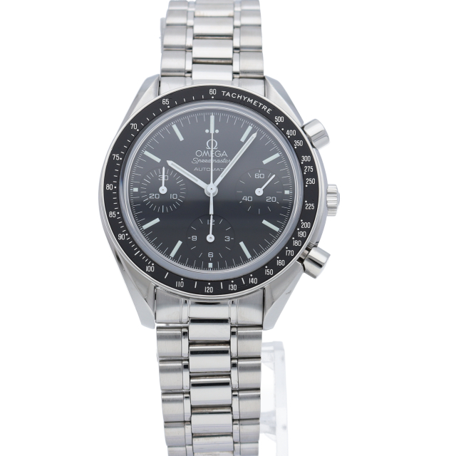 オメガを代表する人気シリーズ「スピードマスター」。プラ風防からサファイアクリスタル風防へ仕様変更された実用性の高いモデルです。すでに生産終了となり、これからの相場が楽しみな1本です。