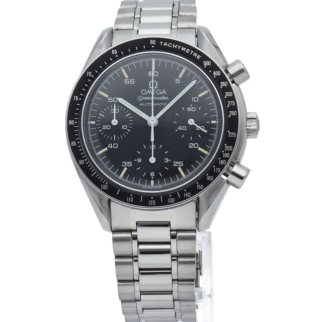 オメガを代表する人気シリーズ「スピードマスター」。プラ風防を使用したレトロな雰囲気かつシンプルにまとまったデザインがスタイルを選ばずにご使用いただけます。