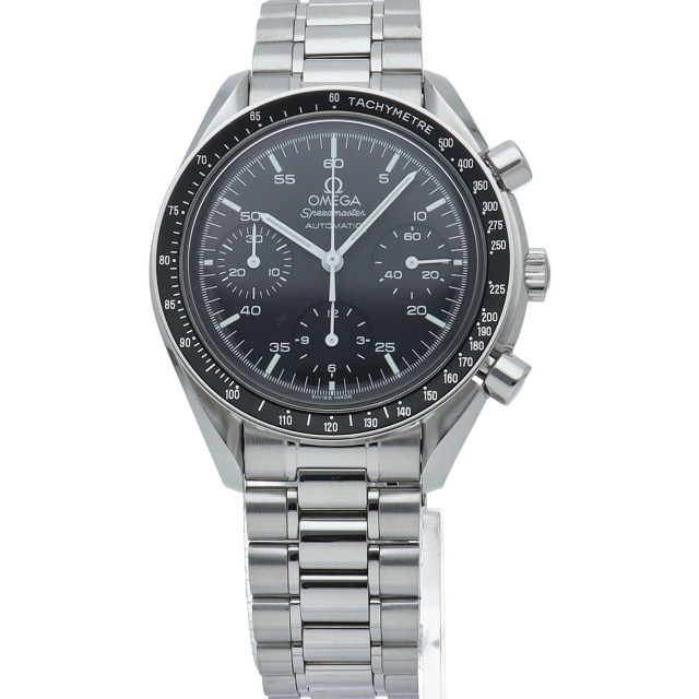 オメガを代表する人気シリーズ「スピードマスター」。プラ風防を使用したレトロな雰囲気かつシンプルにまとまったデザインがスタイルを選ばずにご使用いただけます。