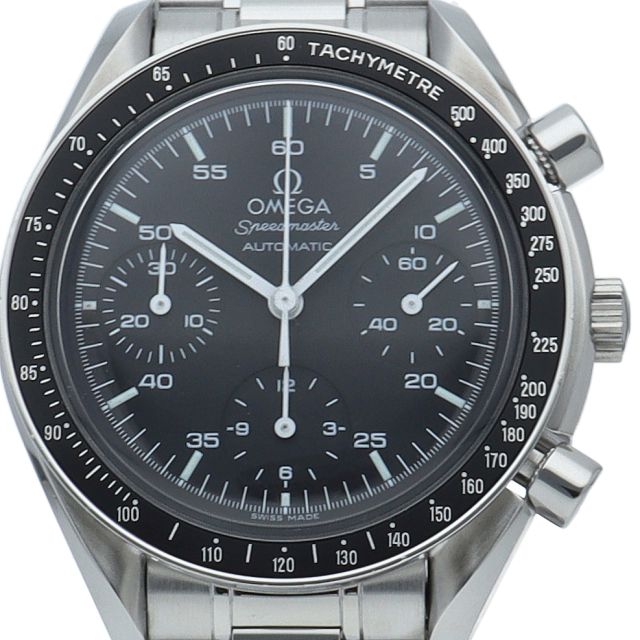 オメガを代表する人気シリーズ「スピードマスター」。プラ風防を使用したレトロな雰囲気かつシンプルにまとまったデザインがスタイルを選ばずにご使用いただけます。