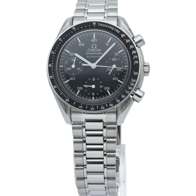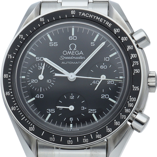 オメガを代表する人気シリーズ「スピードマスター」。プラ風防を使用したレトロな雰囲気かつシンプルにまとまったデザインがスタイルを選ばずにご使用いただけます。