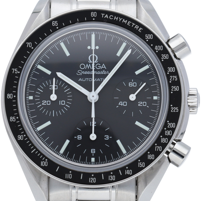 オメガを代表する人気シリーズ「スピードマスター」。プラ風防からサファイアクリスタル風防へ仕様変更された実用性の高いモデルです。すでに生産終了となり、これからの相場が楽しみな1本です。