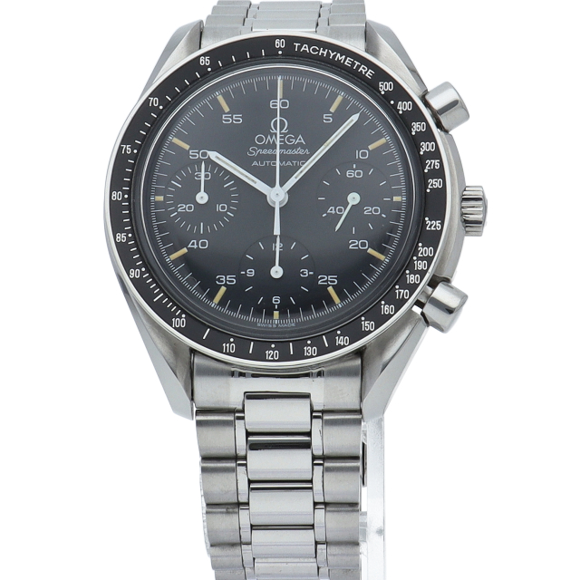 オメガを代表する人気シリーズ「スピードマスター」。プラ風防を使用したレトロな雰囲気かつシンプルにまとまったデザインがスタイルを選ばずにご使用いただけます。