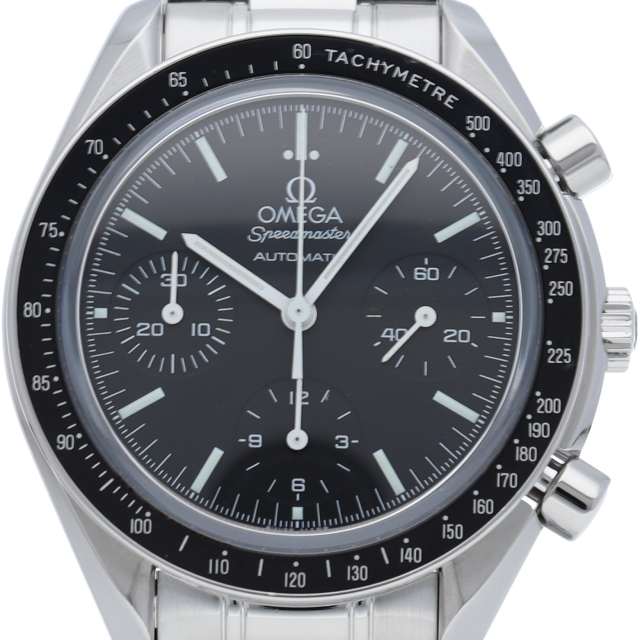 オメガを代表する人気シリーズ「スピードマスター」。プラ風防からサファイアクリスタル風防へ仕様変更された実用性の高いモデルです。すでに、生産終了となりこれからの相場が楽しみな1本です。
