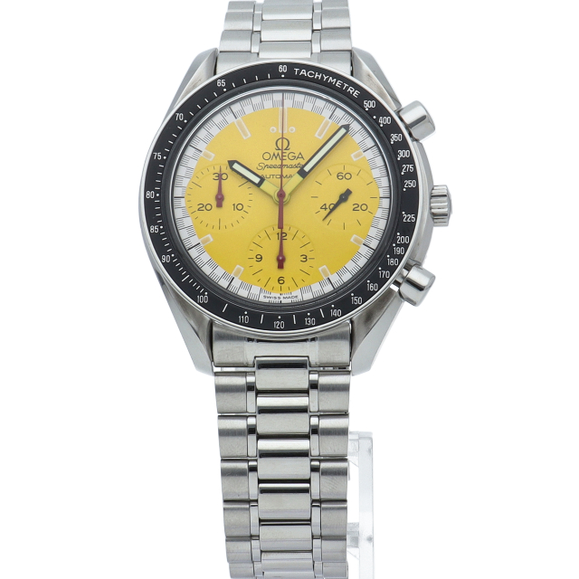 オメガでファンであったF1ドライバー、ミハエル・シューマッハと広告契約を結んだことを記念して製作されたモデル。文字盤の外周部はチェッカーフラッグをイメージしたデザインになっています。