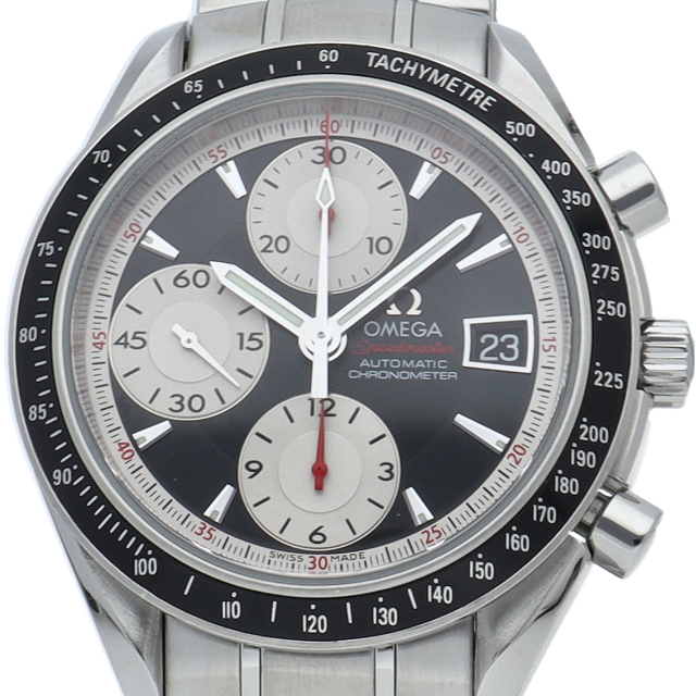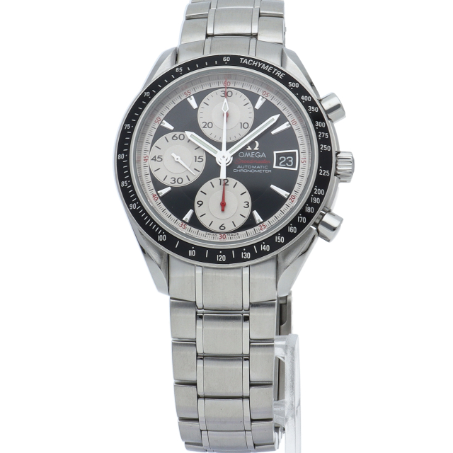 オメガの代表的な人気シリーズ「スピードマスター・デイト」。クロノグラフ・デイト表示機能付きと便利で実用性のある1本です。