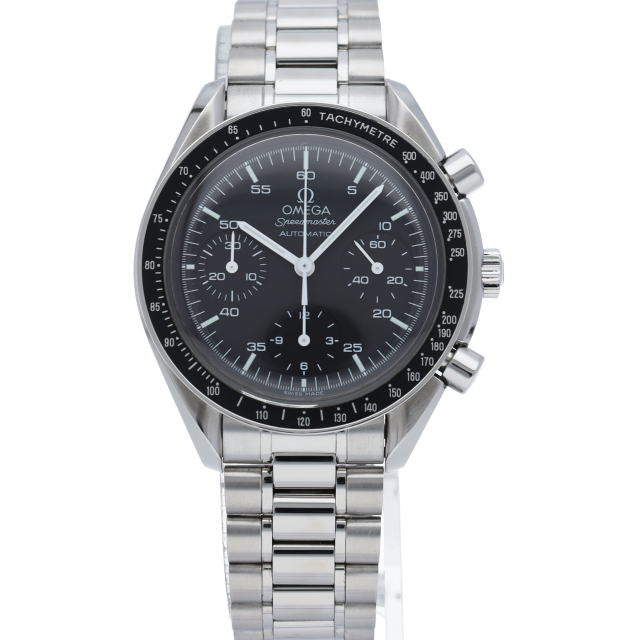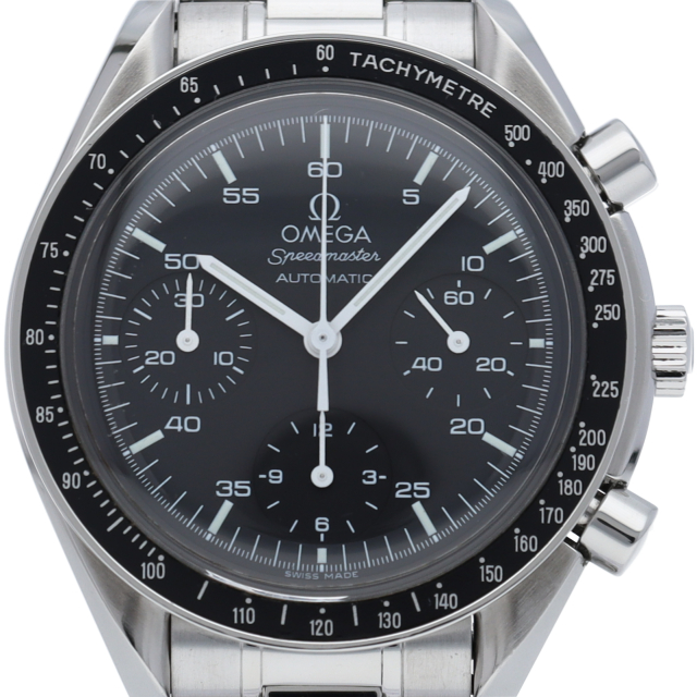 オメガを代表する人気シリーズ「スピードマスター」。プラ風防を使用したレトロな雰囲気かつシンプルにまとまったデザインがスタイルを選ばずにご使用いただけます。