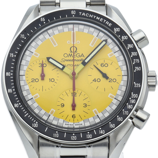 オメガでファンであったF1ドライバー、ミハエル・シューマッハと広告契約を結んだことを記念して製作されたモデル。文字盤の外周部はチェッカーフラッグをイメージしたデザインになっています。
