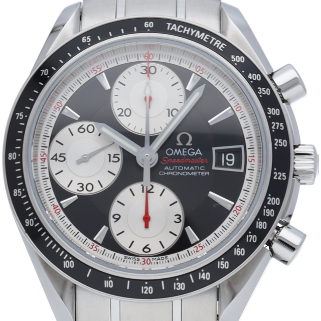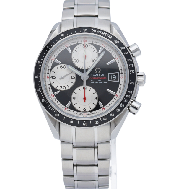 オメガの代表的な人気シリーズ「スピードマスター・デイト」。クロノグラフ・デイト表示機能付きと便利で実用性のある1本です。