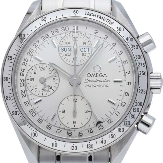 オメガの人気「スピードマスター」。クロノグラフ、月・日・曜日表示機能がついた便利な多機能ウォッチ。スタイルを選ばずにご使用頂ける便利な1本。