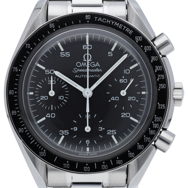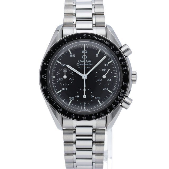 オメガを代表する人気シリーズ「スピードマスター」。プラ風防を使用したレトロな雰囲気かつシンプルにまとまったデザインがスタイルを選ばずにご使用いただけます。