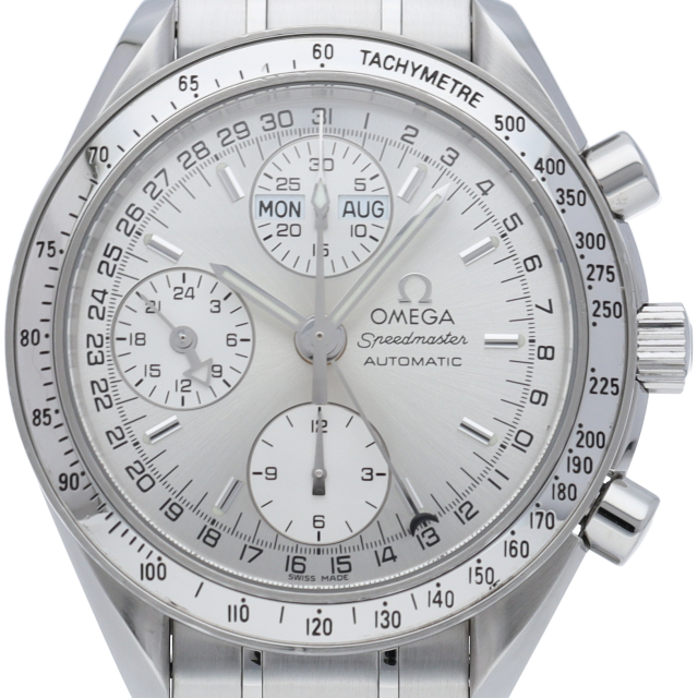 オメガの人気「スピードマスター」。クロノグラフ、月・日・曜日表示機能がついた便利な多機能ウォッチ。スタイルを選ばずにご使用頂ける便利な1本。