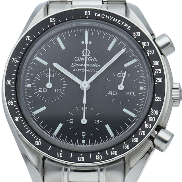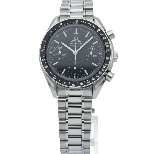 オメガを代表する人気シリーズ「スピードマスター」。プラ風防からサファイアクリスタル風防へ仕様変更された実用性の高いモデルです。すでに生産終了となり、これからの相場が楽しみな1本です。