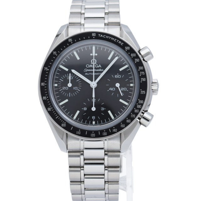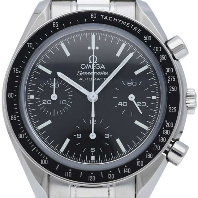 オメガを代表する人気シリーズ「スピードマスター」。プラ風防からサファイアクリスタル風防へ仕様変更された実用性の高いモデルです。すでに生産終了となり、これからの相場が楽しみな1本です。