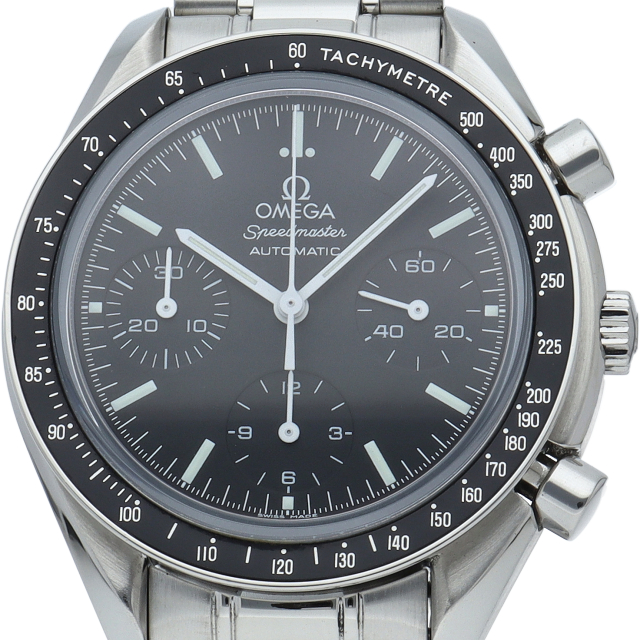 オメガを代表する人気シリーズ「スピードマスター」。プラ風防からサファイアクリスタル風防へ仕様変更された実用性の高いモデルです。すでに生産終了となり、これからの相場が楽しみな1本です。