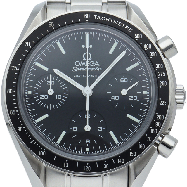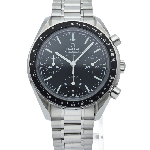 オメガを代表する人気シリーズ「スピードマスター」。プラ風防からサファイアクリスタル風防へ仕様変更された実用性の高いモデルです。すでに生産終了となり、これからの相場が楽しみな1本です。