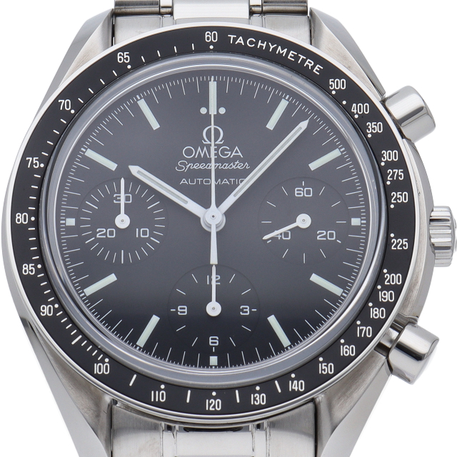 オメガを代表する人気シリーズ「スピードマスター」。プラ風防からサファイアクリスタル風防へ仕様変更された実用性の高いモデルです。すでに生産終了となり、これからの相場が楽しみな1本です。
