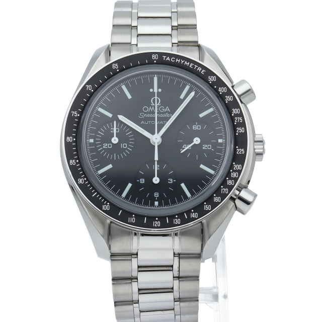オメガを代表する人気シリーズ「スピードマスター」。プラ風防からサファイアクリスタル風防へ仕様変更された実用性の高いモデルです。すでに生産終了となり、これからの相場が楽しみな1本です。