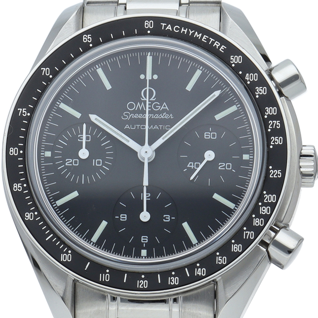 オメガを代表する人気シリーズ「スピードマスター」。プラ風防からサファイアクリスタル風防へ仕様変更された実用性の高いモデルです。すでに生産終了となり、これからの相場が楽しみな1本です。
