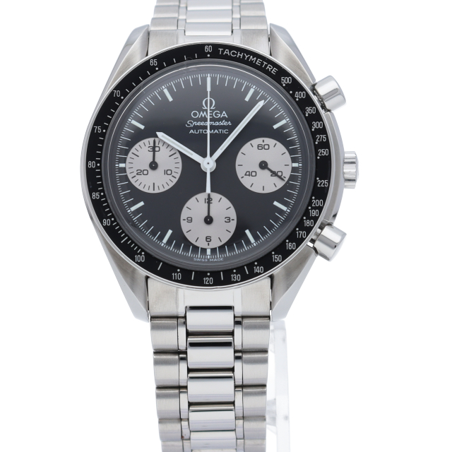 プロフェッショナルと基本コンセプトは同じながら、ひと回り小振りなケースを採用して1971年に登場した「スピードマスター」。こちらは日本限定モデルとなります。クラシカルなプラスチック風防も魅力のひとつです。