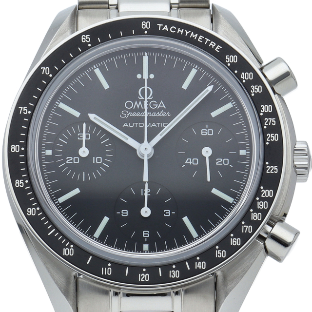 オメガを代表する人気シリーズ「スピードマスター」。プラ風防からサファイアクリスタル風防へ仕様変更された実用性の高いモデルです。すでに生産終了となり、これからの相場が楽しみな1本です。