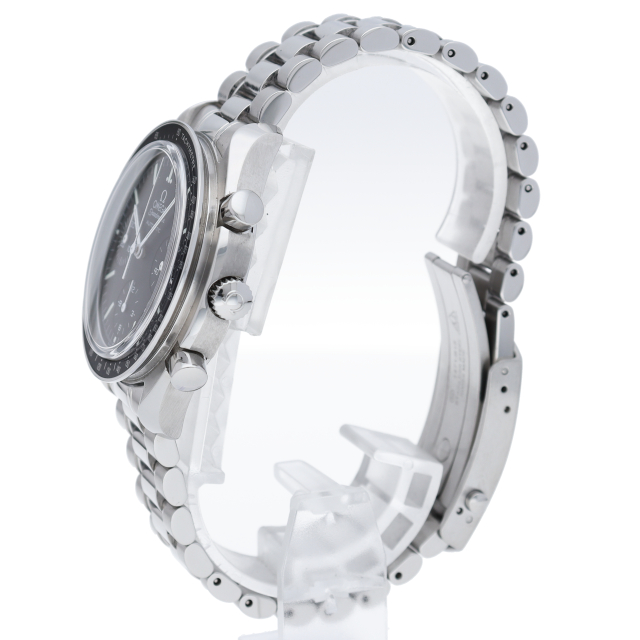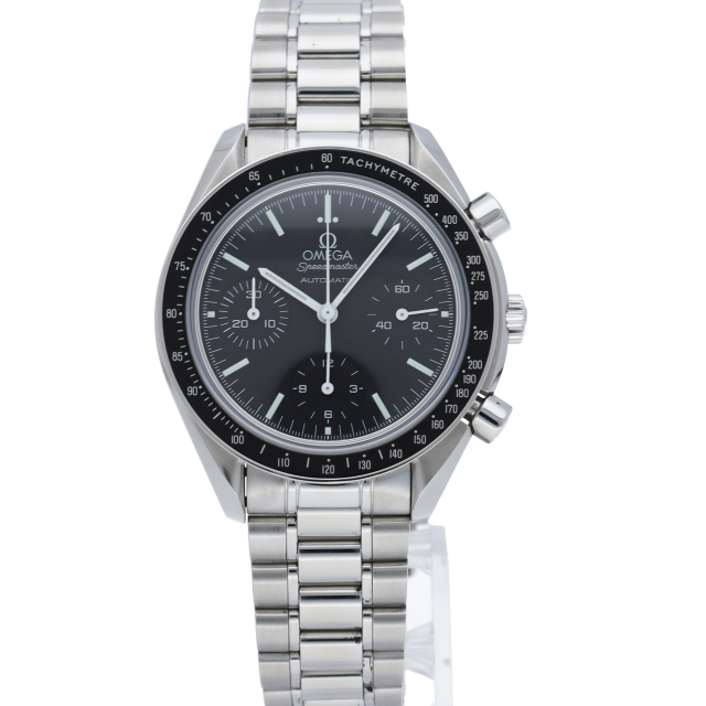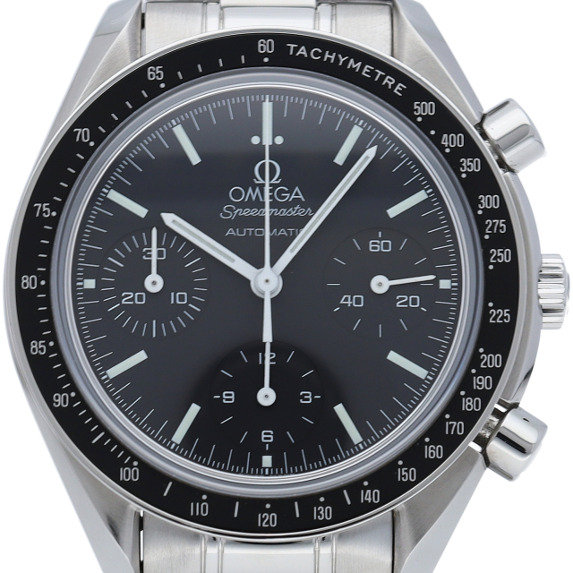 オメガを代表する人気シリーズ「スピードマスター」。プラ風防からサファイアクリスタル風防へ仕様変更された実用性の高いモデルです。すでに生産終了となり、これからの相場が楽しみな1本です。