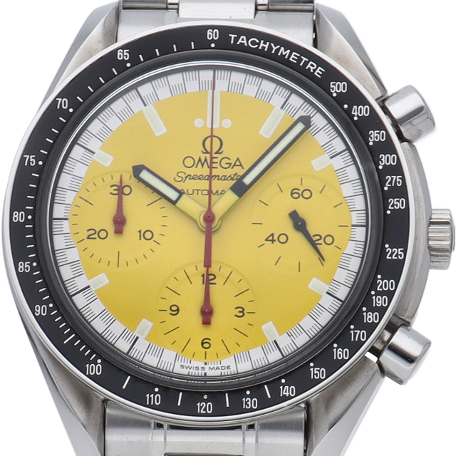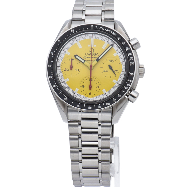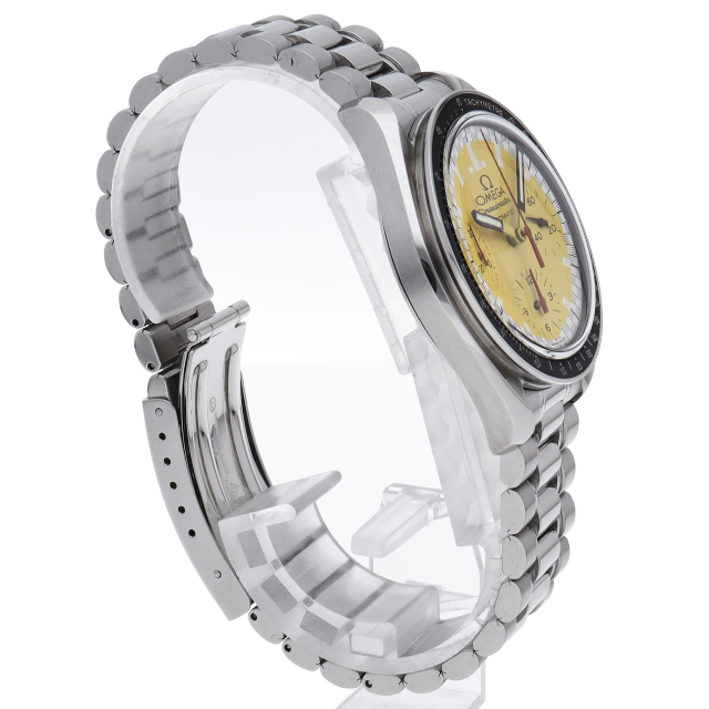 オメガでファンであったF1ドライバー、ミハエル・シューマッハと広告契約を結んだことを記念して製作されたモデル。文字盤の外周部はチェッカーフラッグをイメージしたデザインになっています。
