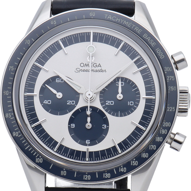オメガを代表する人気シリーズ「スピードマスター」。タイムピースのステンレススティール製ケースには、ホワイトのスーパールミノヴァを塗布したタキメータースケールを備えるポリッシュ仕上げのブルーセラミック製ベゼルが調和します。ベージュのステッチが入ったブルーのレザーストラップ、そして自社製キャリバー1861が、タイムピースを完璧に仕上げています。