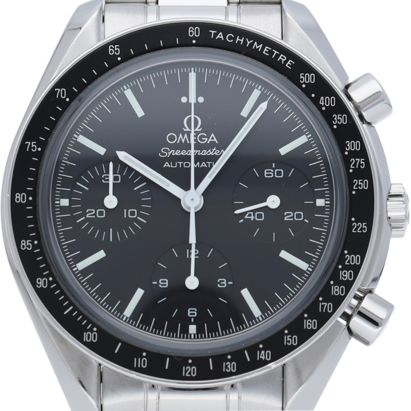 オメガを代表する人気シリーズ「スピードマスター」。プラ風防からサファイアクリスタル風防へ仕様変更された実用性の高いモデルです。すでに生産終了となり、これからの相場が楽しみな1本です。