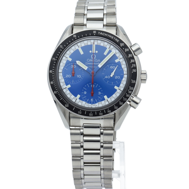 数々のF1チャンピオンに輝いたシューマッハとオメガのコラボレーション「スピードマスター」。シンプルな中にもひときわ目立つ文字盤の配色がオシャレな1本。