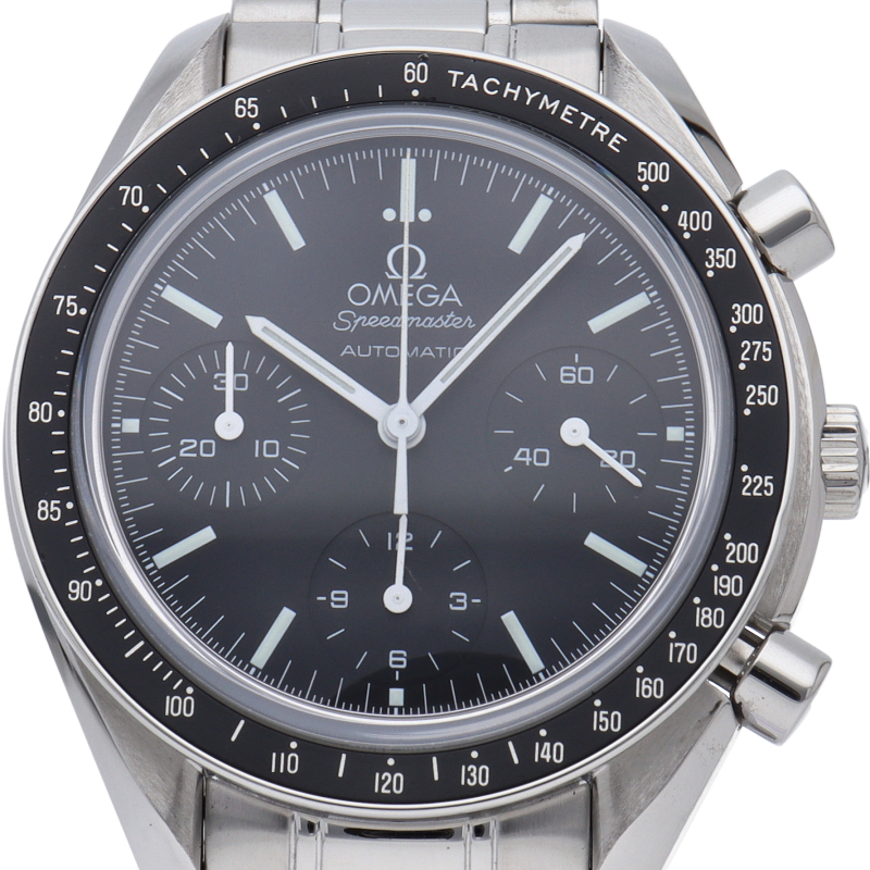 オメガを代表する人気シリーズ「スピードマスター」。プラ風防からサファイアクリスタル風防へ仕様変更された実用性の高いモデルです。すでに生産終了となり、これからの相場が楽しみな1本です。