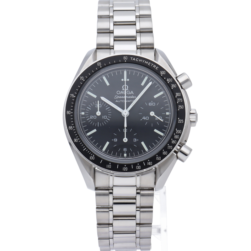 オメガを代表する人気シリーズ「スピードマスター」。プラ風防からサファイアクリスタル風防へ仕様変更された実用性の高いモデルです。すでに生産終了となり、これからの相場が楽しみな1本です。