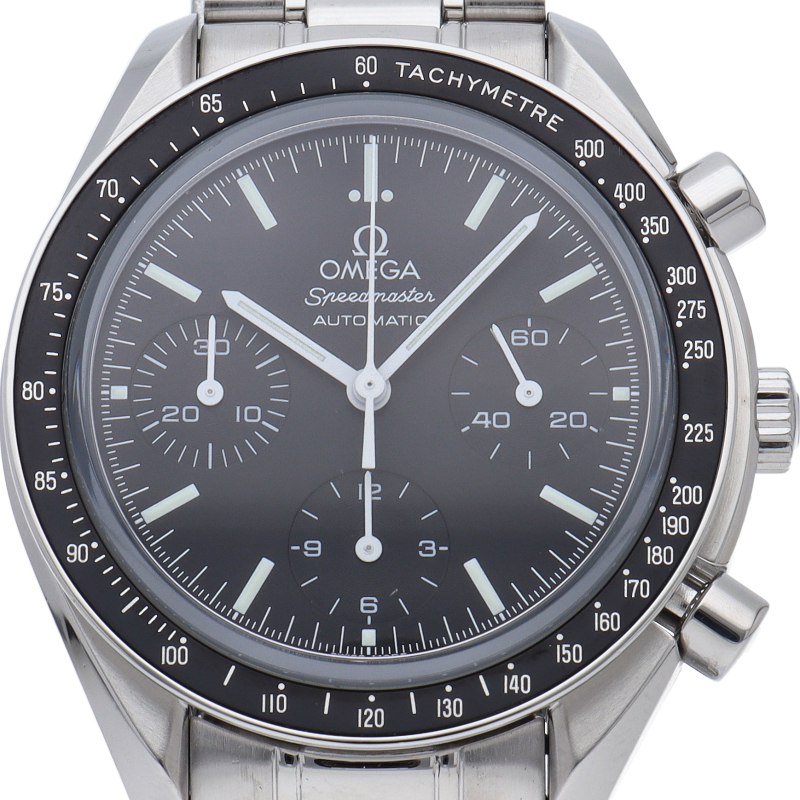 オメガを代表する人気シリーズ「スピードマスター」。プラ風防からサファイアクリスタル風防へ仕様変更された実用性の高いモデルです。すでに生産終了となり、これからの相場が楽しみな1本です。