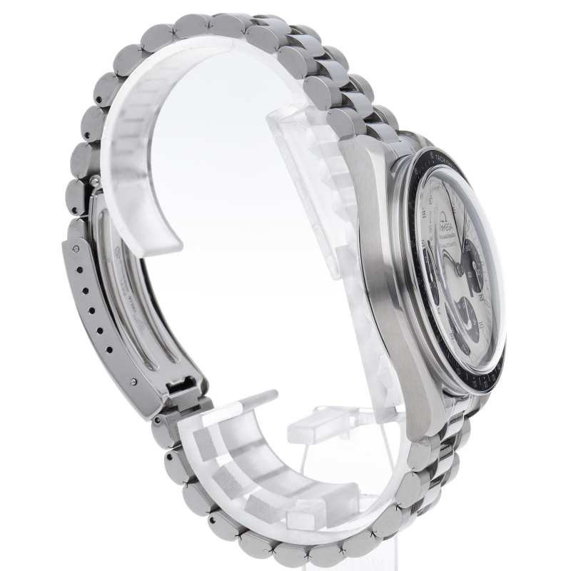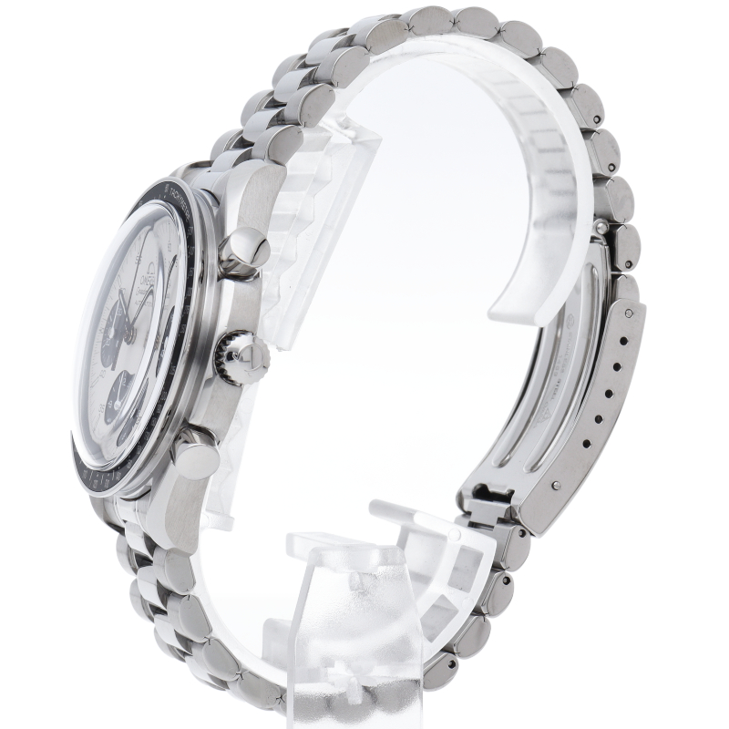 6度にわたる月面着陸プロジェクトすべてに携えられたという、雄大な背景を持つ伝説の「スピードマスター」。こちらは“パンダモデル”と呼ばれるホワイト×ブラックの文字盤が印象的な丸井限定モデルです。