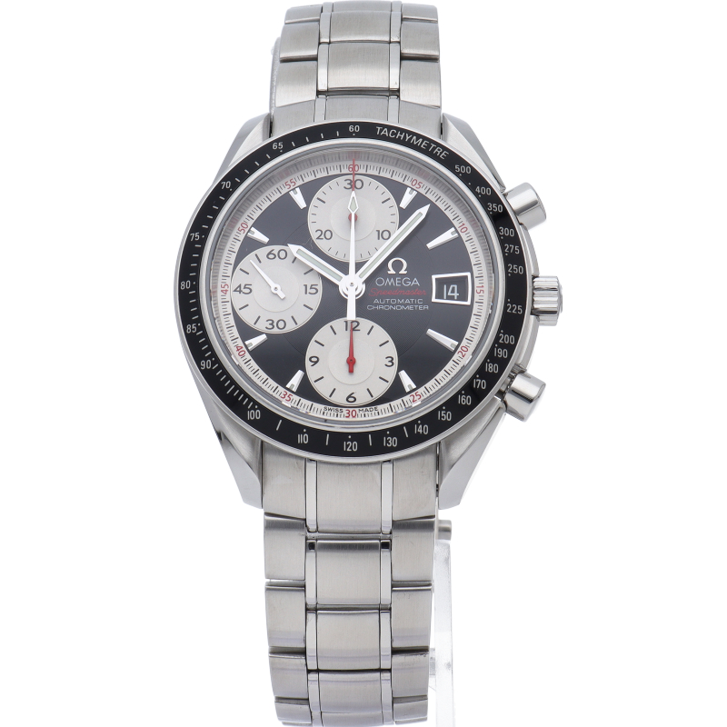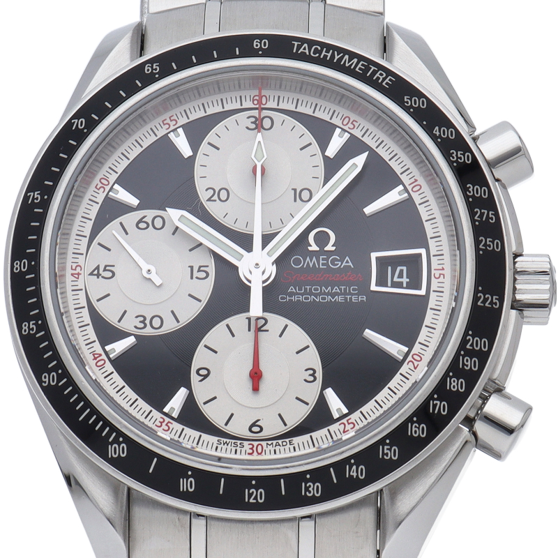 オメガの代表的な人気シリーズ「スピードマスター・デイト」。クロノグラフ・デイト表示機能付きと便利で実用性のある1本です。