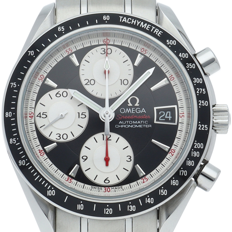 オメガの代表的な人気シリーズ「スピードマスター・デイト」。クロノグラフ・デイト表示機能付きと便利で実用性のある1本です。