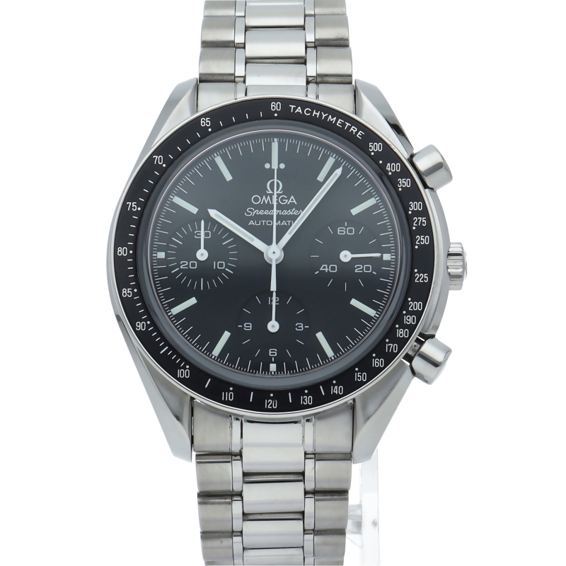 オメガを代表する人気シリーズ「スピードマスター」。プラ風防からサファイアクリスタル風防へ仕様変更された実用性の高いモデルです。すでに生産終了となり、これからの相場が楽しみな1本です。