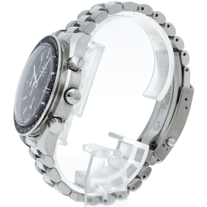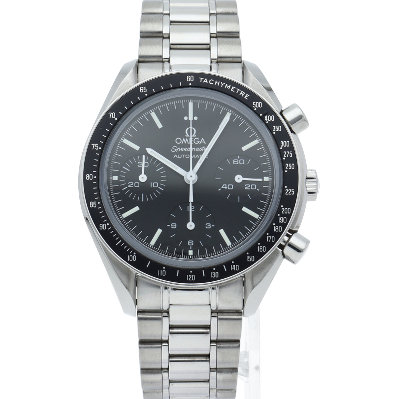 オメガを代表する人気シリーズ「スピードマスター」。プラ風防からサファイアクリスタル風防へ仕様変更された実用性の高いモデルです。すでに生産終了となり、これからの相場が楽しみな1本です。