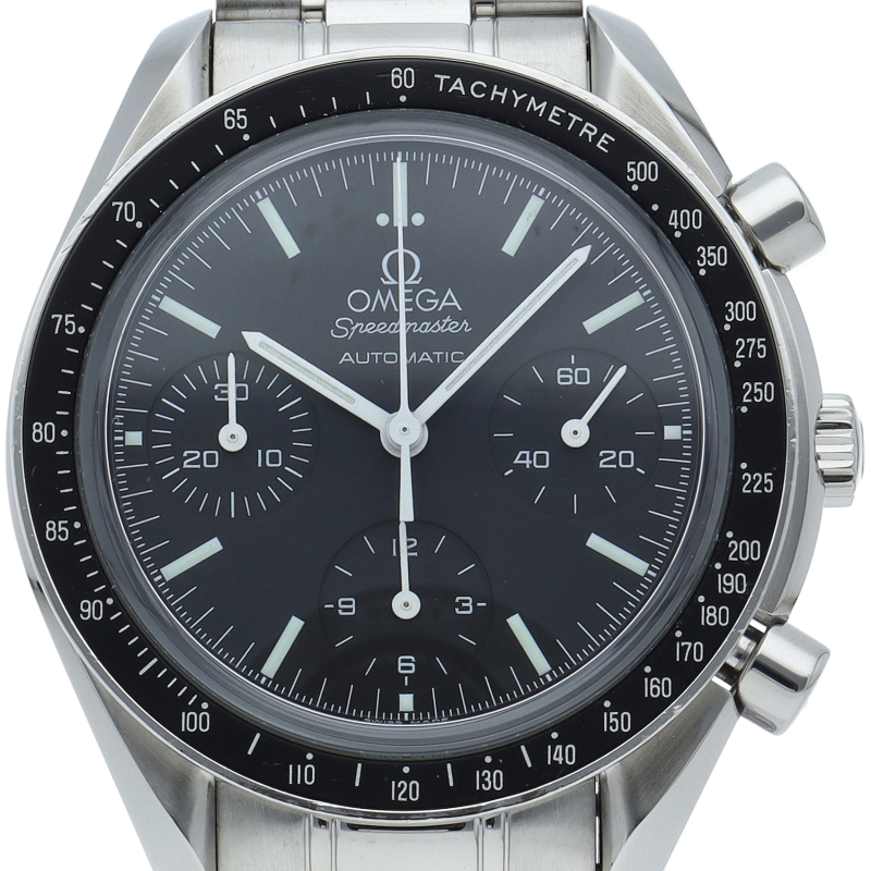 オメガを代表する人気シリーズ「スピードマスター」。プラ風防からサファイアクリスタル風防へ仕様変更された実用性の高いモデルです。すでに生産終了となり、これからの相場が楽しみな1本です。
