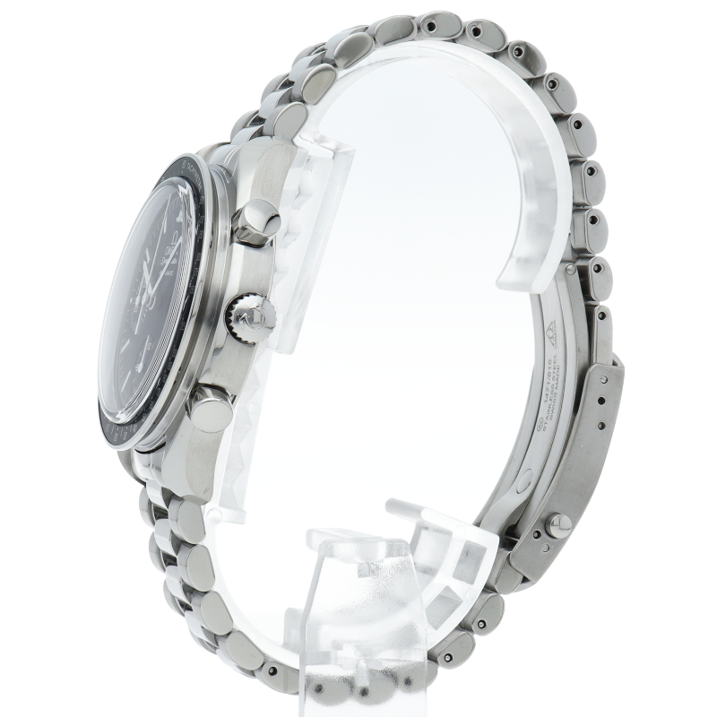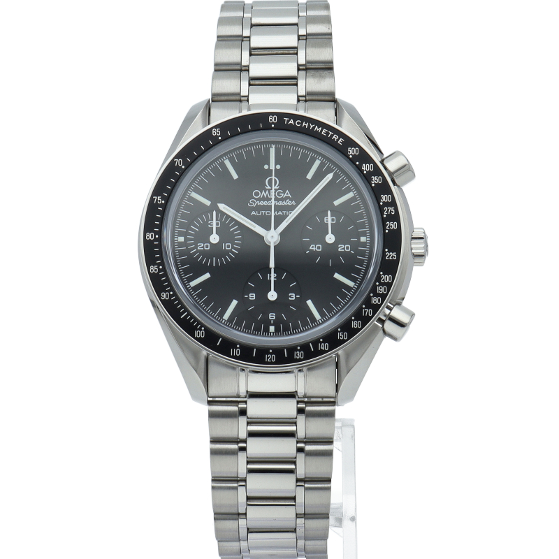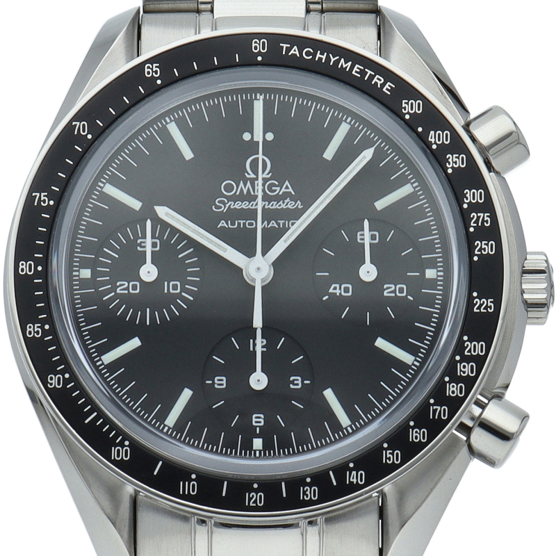 オメガを代表する人気シリーズ「スピードマスター」。プラ風防からサファイアクリスタル風防へ仕様変更された実用性の高いモデルです。すでに生産終了となり、これからの相場が楽しみな1本です。