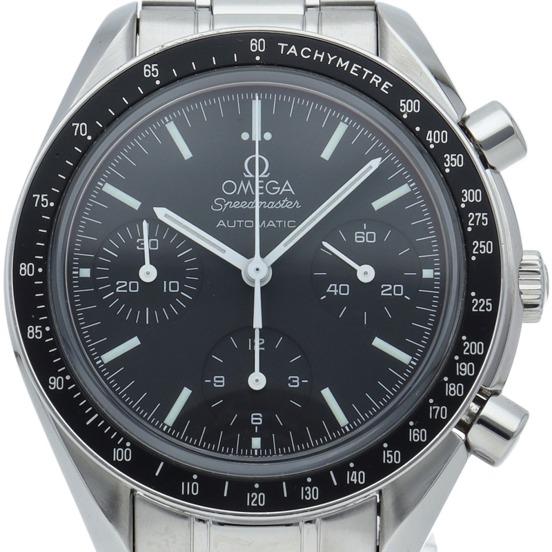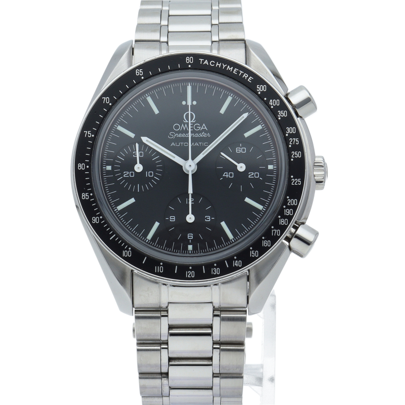 オメガを代表する人気シリーズ「スピードマスター」。プラ風防からサファイアクリスタル風防へ仕様変更された実用性の高いモデルです。すでに生産終了となり、これからの相場が楽しみな1本です。