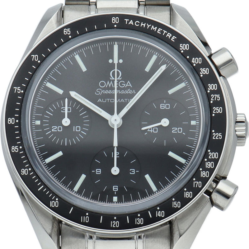 オメガを代表する人気シリーズ「スピードマスター」。プラ風防からサファイアクリスタル風防へ仕様変更された実用性の高いモデルです。すでに生産終了となり、これからの相場が楽しみな1本です。