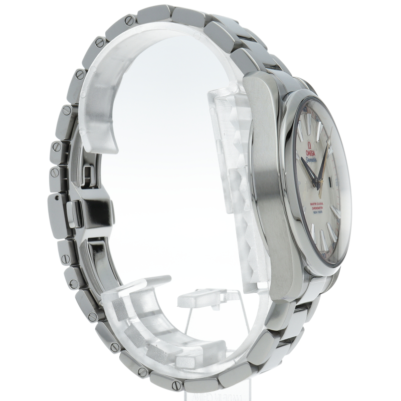 防水時計の代名詞オメガ・シーマスターに属する、スタンダード・コレクションが「シーマスター アクアテラ」です。スタイリッシュなデザインと革新的なテクノロジーが融合したコレクションです。フリースプラングテンプを採用した、60時間のパワーリザーブを備える、オメガ自社製自動巻きムーブメント・オメガ8500を搭載しています。ラッカー仕上げのシルバーダイアルが特徴です。