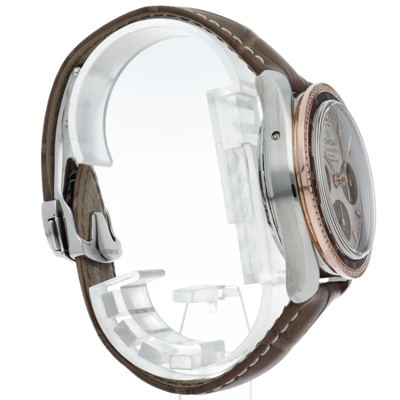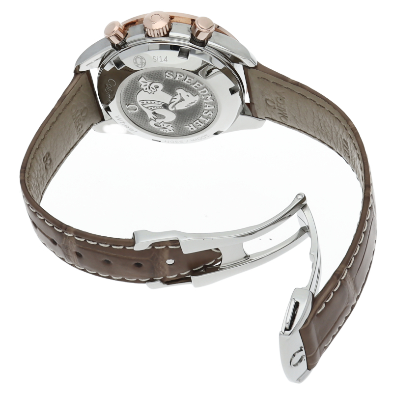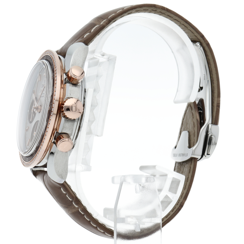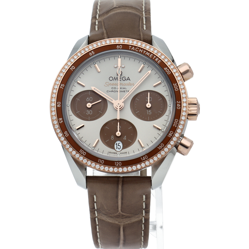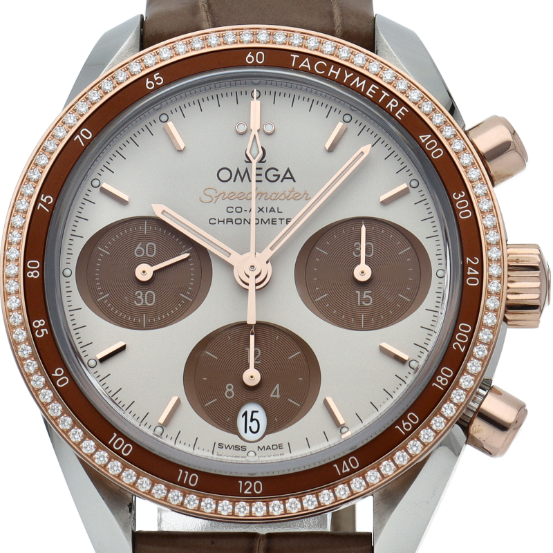 スピードマスター 38mmは、シンプルさ、サイズ感、カラーを大切にして生まれたモデル。最も有名なクロノグラフとしてのルックスと伝統もしっかりと守られています。ステンレススティール&18Kセドナゴールド製ケースに組み合わされた、デュアルベゼルのデザインが特徴です。