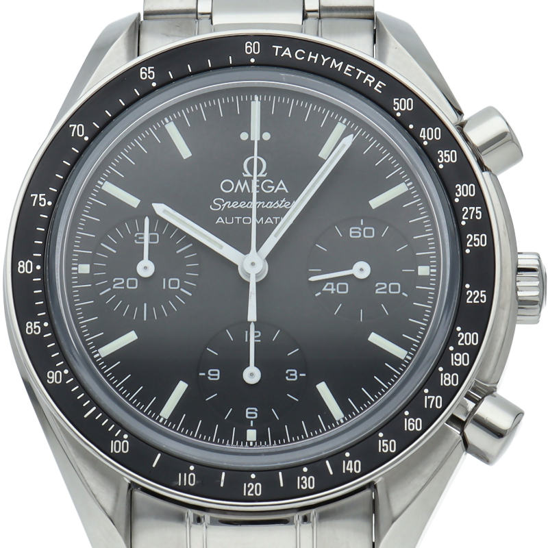 オメガを代表する人気シリーズ「スピードマスター」。プラ風防からサファイアクリスタル風防へ仕様変更された実用性の高いモデルです。すでに生産終了となり、これからの相場が楽しみな1本です。